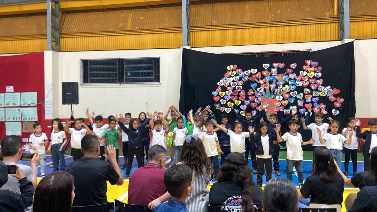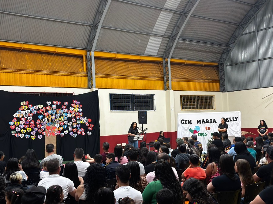 Com a estrutura do ginásio fechado e iluminado, a escola conseguiu oferecer um ambiente adequado para o encontro noturno, reforçando a importância de momentos de convivência que unem educação, afeto e conscientização.