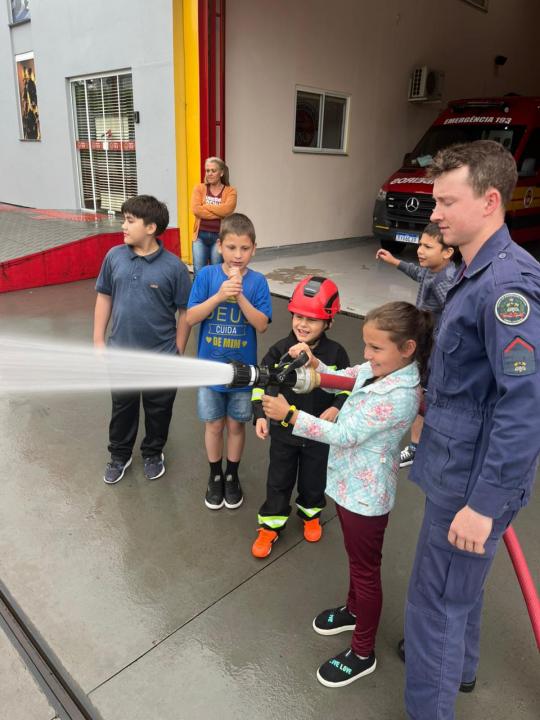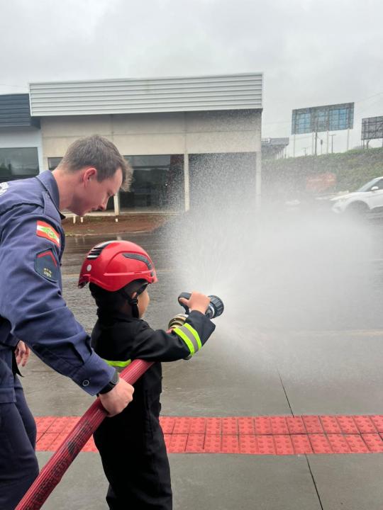 Durante as atividades, os bombeiros também repassaram orientações básicas sobre segurança, prevenção de acidentes domésticos e o funcionamento do serviço de emergência 193. Além disso, as crianças puderam experimentar o uso de mangueiras e equipamentos, sempre com acompanhamento dos profissionais, vivenciando de forma prática o dia a dia da corporação.